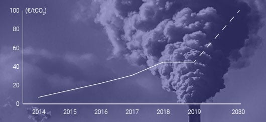 Le montant de la « taxe carbone » est actuellement gelé à un niveau de 44,6 €/t CO2. (©Connaissance des Énergies)