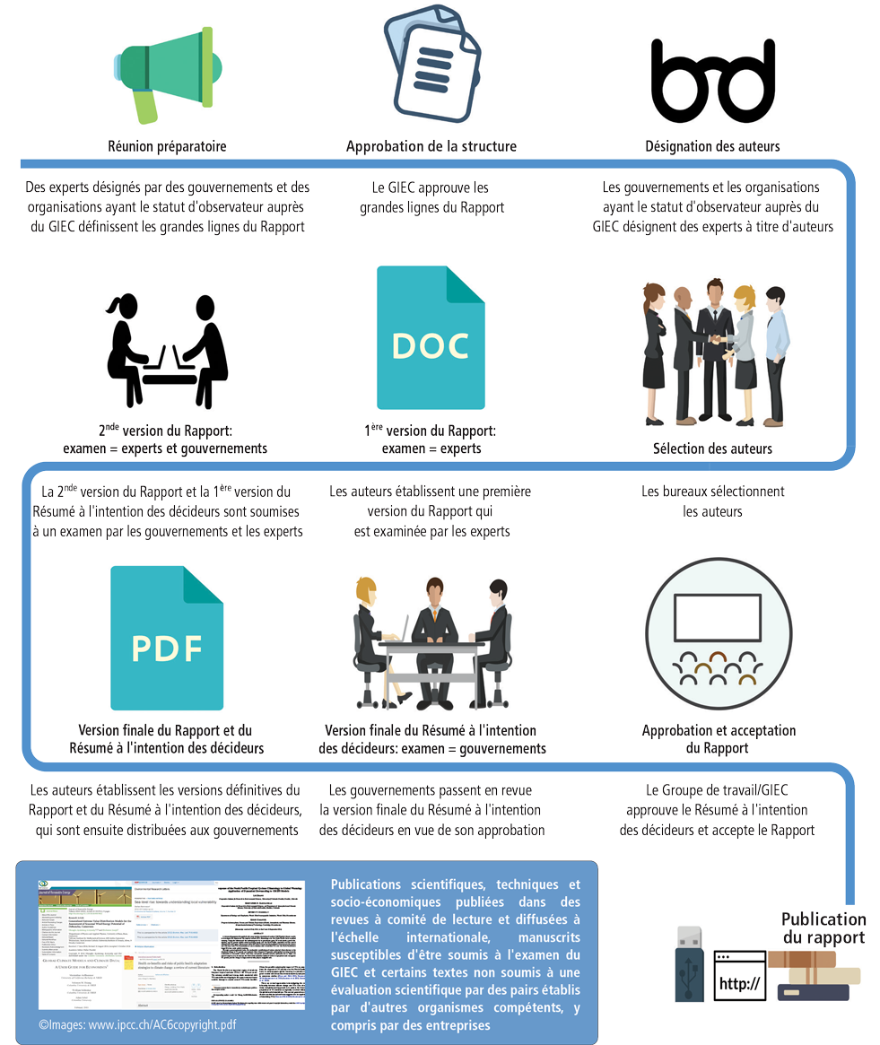 Les rapports du GIEC sont préparés par des scientifiques éminents : spécialistes des sciences de l'atmosphère, océanographes, glaciologues, économistes, etc. Des centaines d'entre eux « consacrent du temps à établir les rapports d’évaluation du GIEC en tant qu’auteurs coordonnateurs principaux et auteurs principaux », précise le GIEC. Ils ont recours à leur tour à des centaines d’autres experts qui apportent leur contribution dans des domaines spécifiques en qualité d’ « auteurs collaborateurs ». Des commentaires externes (de scientifiques et d’autres experts) sont sollicités avant la publication de chaque rapport.