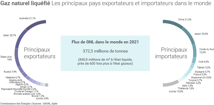 Les principaux importateurs et exportateurs de GNL dans le monde en 2021
