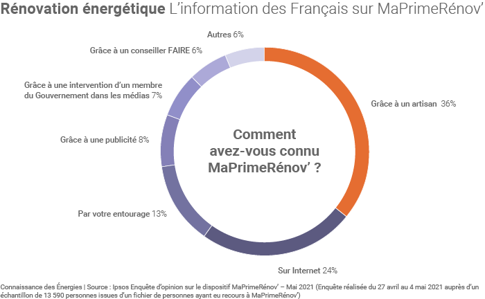 Parmi les autres enseignements de l’enquête, il est rappelé que les artisans constituent la principale source d’information sur le dispositif MaPrimeRénov’ (36% des personnes en ayant bénéficié déclarent avoir connu le dispositif grâce à un artisan). Seules 24% des personnes ayant bénéficié de cette aide ont par ailleurs eu recours à un conseiller FAIRE (« Faciliter, Accompagner et Informer pour la Rénovation Énergétique »). L’Anah met enfin en exergue le taux de satisfaction élevé des bénéficiaires du dispositif (88% de répondants satisfaits).