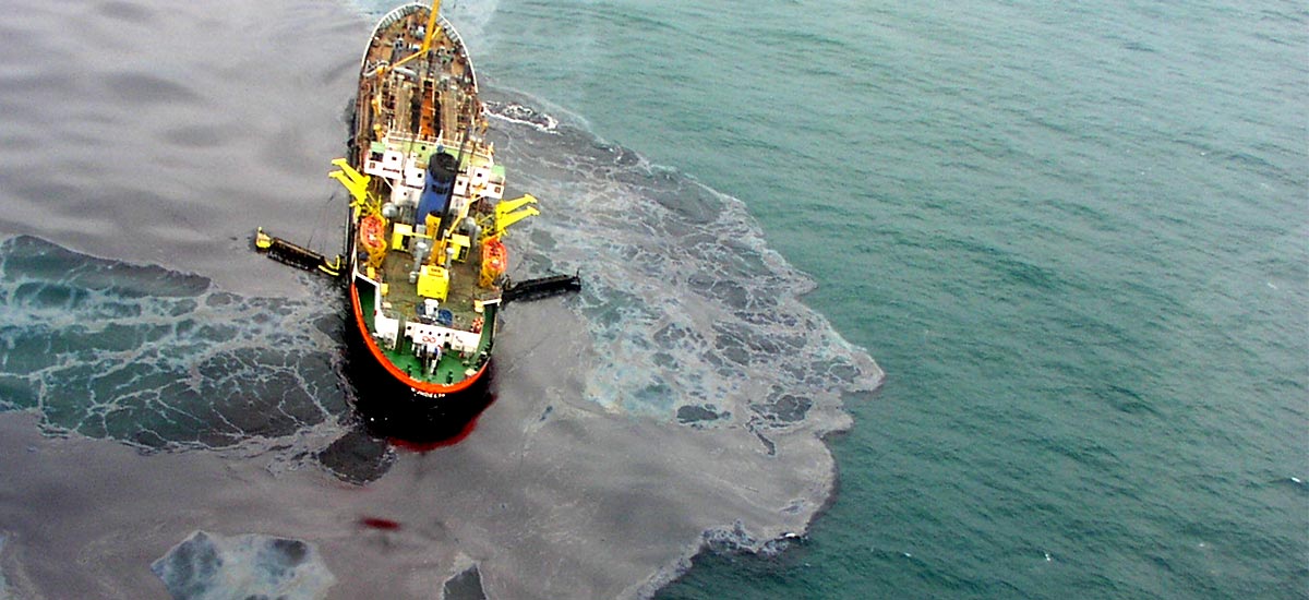 Opération de récupération d'hydrocarbures au large de la Galice, suite à la marée noire du Prestige en novembre 2002. (©ITOPF)