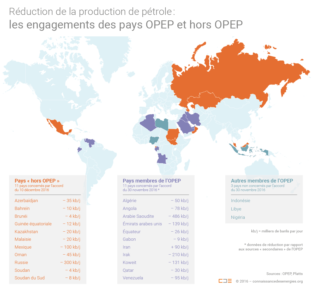 Dans le cadre des accords du 30 novembre et du 10 décembre 2016, la plupart des membres de l'OPEP et certains producteurs « non-OPEP » se sont engagés à réduire leur production pétrolière à partir du 1er janvier 2017 (pour une période de 6 mois) afin d'accélérer le rééquilibrage des marchés entre offre et demande et faire remonter les cours du pétrole.