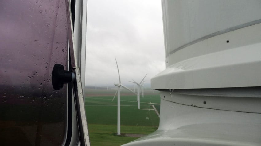Rendez-vous un après-midi de février sur le parc éolien du chemin des Haguenets, à 18 km de Beauvais (Oise). Le temps est maussade mais la production des 14 éoliennes est au beau fixe grâce à un vent soufflant à plus de 35 km/h à leur sommet. Connaissance des Énergies vous propose de découvrir de l’intérieur et de haut en bas l’un de ces aérogénérateurs géants.