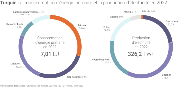 En 2022, les énergies fossiles ont compté en Turquie pour près de 81% de la consommation d'énergie primaire et environ 58% de la production d'électricité. (©Connaissance des Énergies)