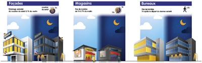 La nouvelle réglementation interdisant l’éclairage nocturne entre 1h et 7h s’applique aux bureaux, aux magasins et aux façades des bâtiments. Elle vise à éliminer les éclairages inutiles qui contribuent à la « pollution lumineuse »(1). Si seulement 16% des Français se sentent personnellement exposés à des nuisances lumineuses la nuit(2), l’éclairage artificiel excessif présenterait plusieurs inconvénients. Il perturbe entre autres le sommeil de certains riverains ainsi que la faune nocturne, par exemple dans ses migrations.