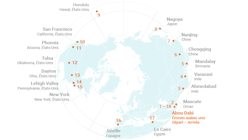 Pour rappel, Solar Impulse « 2 » (un prototype avait été réalisé quelques années plus tôt) est un avion de 72,3 m d’envergure intégrant plus de 17 000 cellules photovoltaïques. Retour en images sur quelques temps forts de ce tour du monde.
