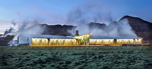 En 2014, l’Islande a généré 28,9% de son électricité grâce à la géothermie(3), en complément de l’hydroélectricité. Cette exploitation de la chaleur terrestre « renouvelable » n'est pas tout à fait « décarbonée » puisqu'elle s'accompagne de remontées de gaz volcaniques comme le dioxyde de carbone (CO2) et le sulfure d’hydrogène (H2S).