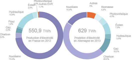 Malgré des problématiques énergétiques communes, « nous n’avons pas les mêmes situations en France et en Allemagne » a rappelé François Hollande lors de sa conférence de presse conjointe avec Angela Merkel. Rappel en quelques chiffres de la situation des deux principaux consommateurs d’énergie en Europe.