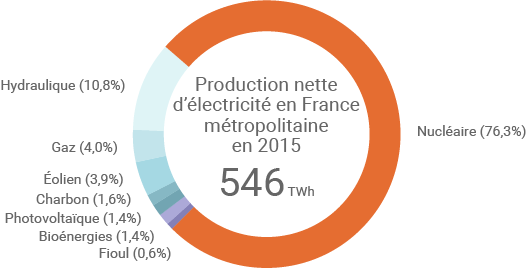 Répartition de la production électrique française en 2015 (©Connaissance des Énergies)