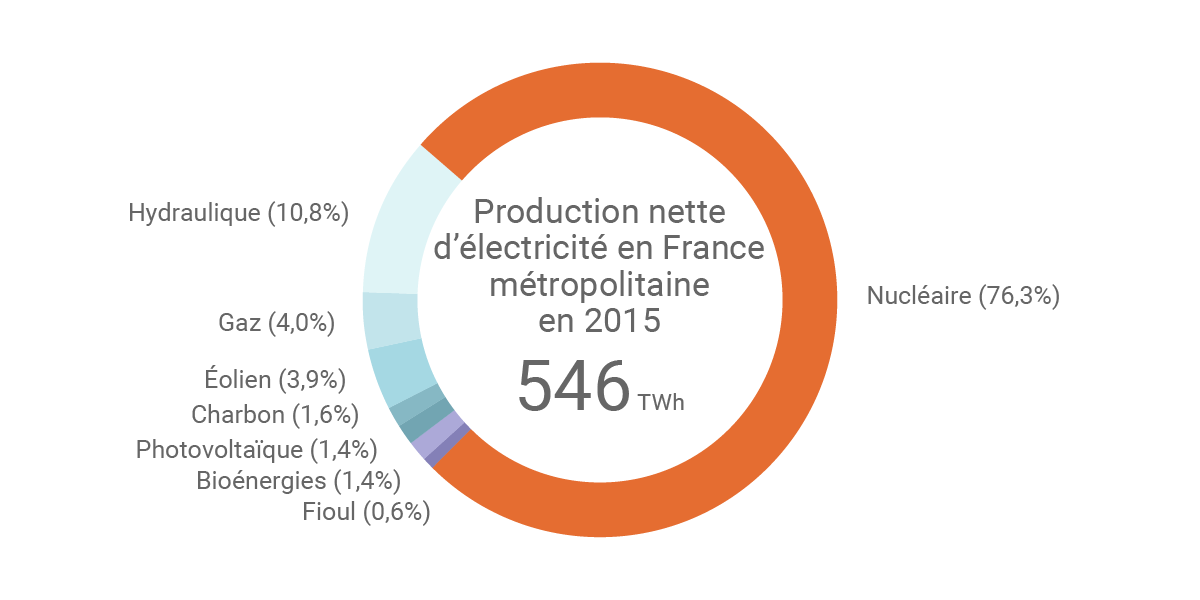 Répartition de la production électrique française en 2015 (©Connaissance des Énergies)