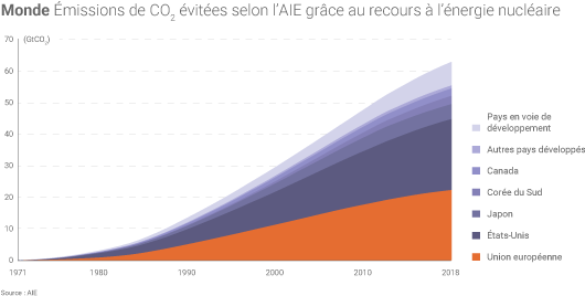 Dans son rapport, l’AIE estime que le recours à l’énergie nucléaire lors des dernières décennies a permis d'éviter l’émission supplémentaire de 63 milliards de tonnes de CO2 entre 1971 et 2018. « Sans nucléaire, les émissions liées à l’électricité aurait été supérieures de près de 20% durant cette période et le total des émissions liées à l'énergie de 6% », estime l’AIE.