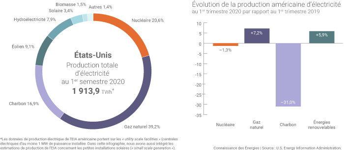 La raison principale de cet effondrement : la chute de la part du charbon dans la production d’électricité du pays, de 44,8% en 2010 à 16,9% au 1er semestre 2020. La petite reprise attendue en 2021 ne change rien à cette tendance lourde : le charbon est victime de la concurrence du gaz (environ 39% de la production nationale d’électricité). Les compagnies d’électricité hésitent à investir dans des centrales qui doivent être amorties sur des décennies et qui peuvent être remises en cause par une future administration. Les tentatives de l’administration pour imposer une obligation de recours au charbon au motif d’une prétendue sécurité nationale se sont heurtées au refus des membres Républicains de l’agence compétente (la FERC), qui privilégient la loi du marché.
