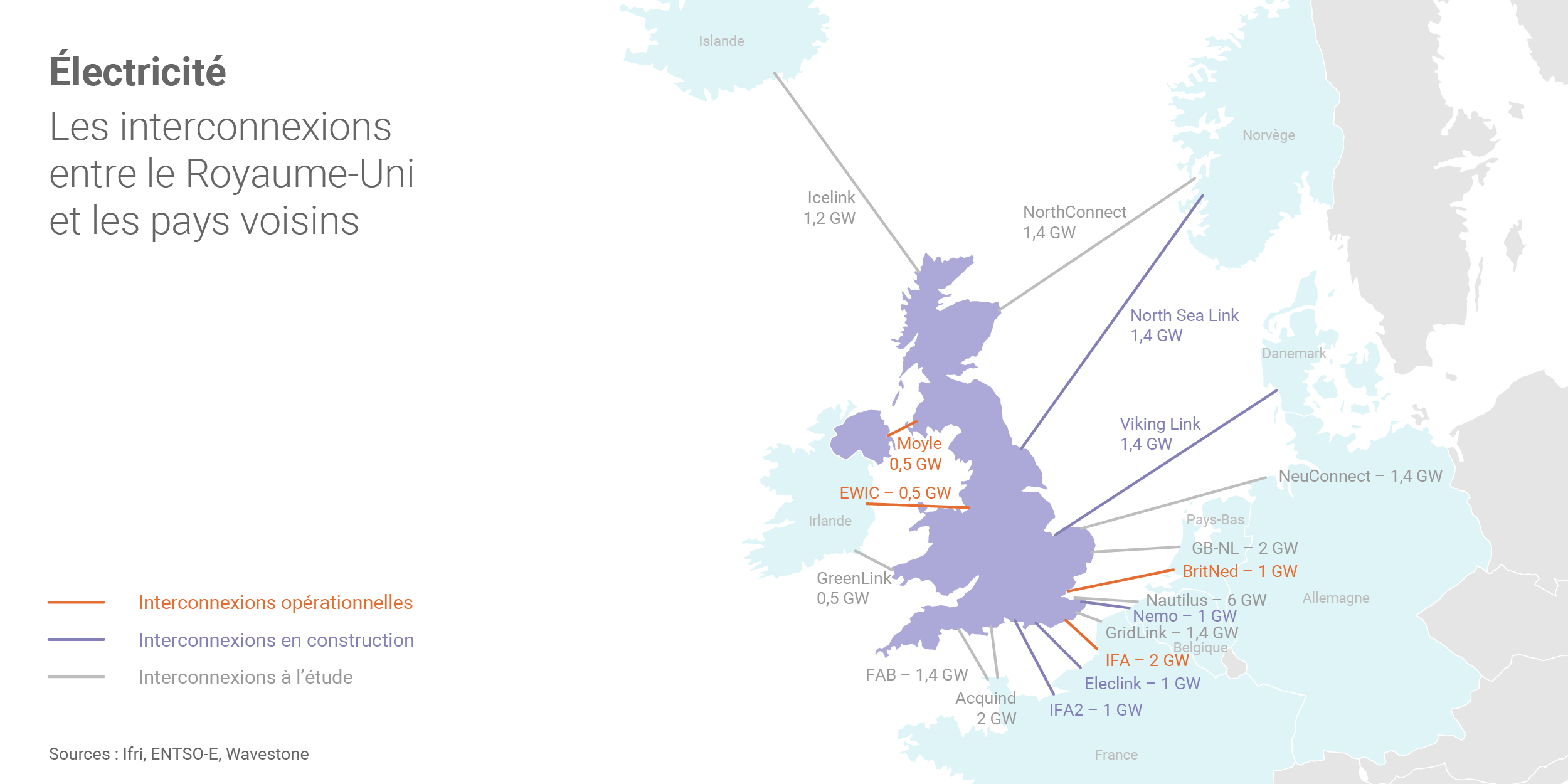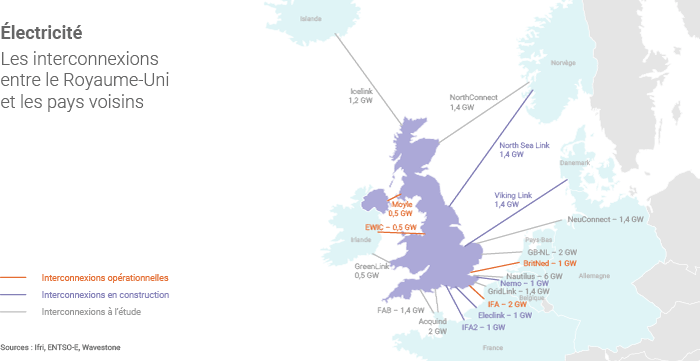 Les deux premiers ne semblent pas remis en cause. Il est indéniable qu’une meilleure intégration des marchés électriques permet de renforcer la sécurité d’approvisionnement, en permettant une assistance mutuelle entre marchés électriques nationaux selon les profils de consommateurs et capacités de production. Concernant l’intégration des énergies renouvelables intermittentes, tirer profit des complémentarités de bouquets nationaux comme celui de la France, puissance nucléaire, et celui du Royaume-Uni, leader mondial de l’éolien en mer, est intéressant. Les importations britanniques vont d’ailleurs croissant avec la fermeture des centrales de charbon, prévue d’ici 2025. Qui plus est, la montée en puissance des énergies renouvelables en France exigera de davantage sécuriser le réseau grâce à des échanges aux frontières.