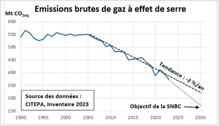 Emissions brutes de gaz à effet de serre de la France. Fourni par l'auteur