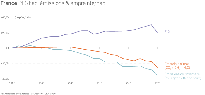 Reste bien entendu l’essentiel : la baisse de l’empreinte climat du pays n’est pas du tout suffisante pour nous mettre en cohérence avec les trajectoires visant la neutralité climatique vers le milieu du siècle. Pour ce faire, l’Union européenne doit viser une réduction de - 55 % des émissions de gaz à effet de serre entre 1990 et 2030 alors que notre politique climatique est encore calé sur l’objectif antérieur de - 40%.