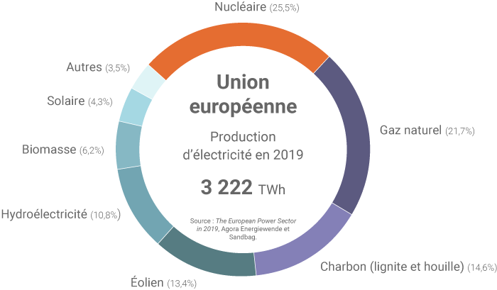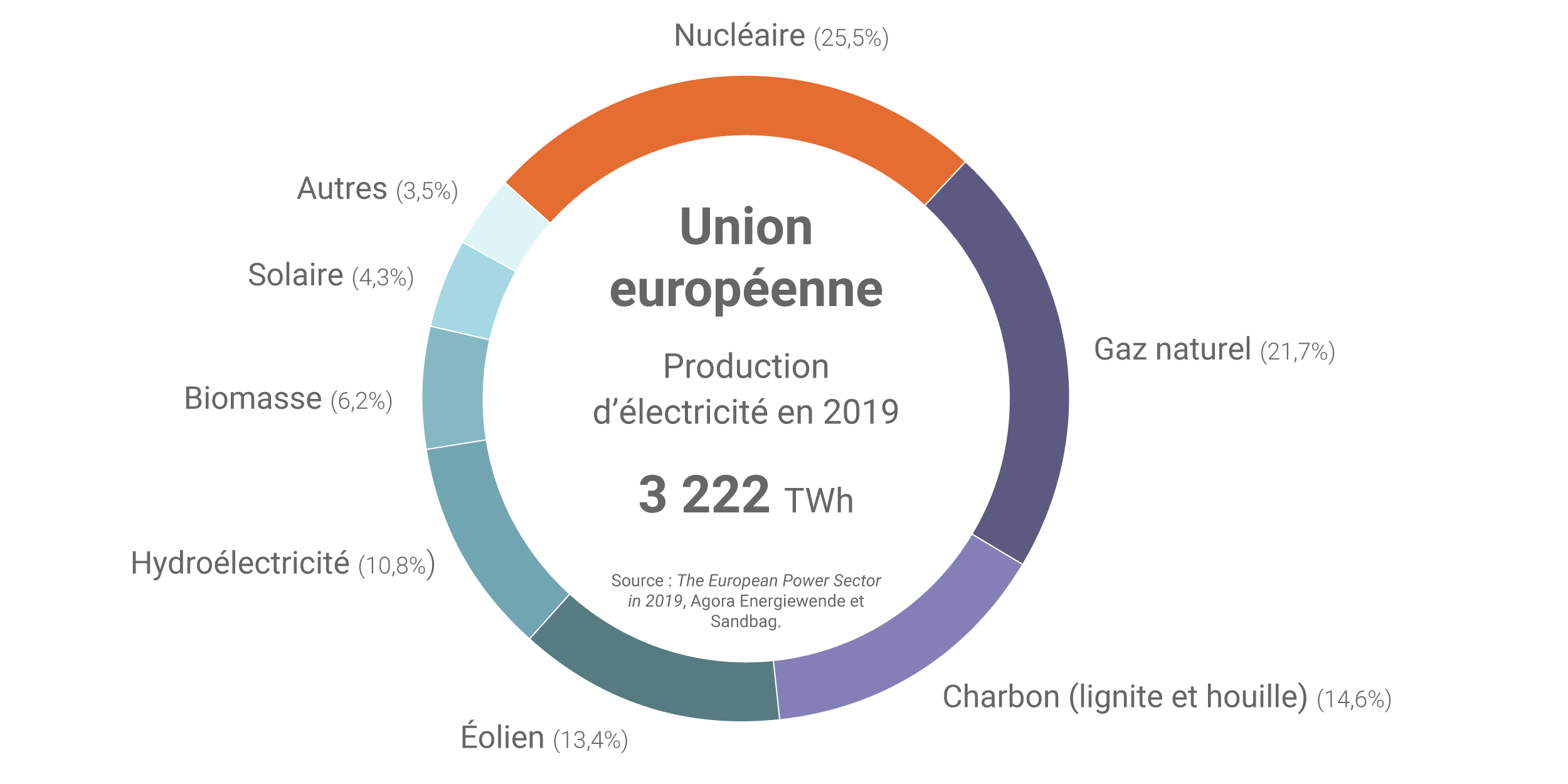 En 2019, le charbon a été la 3e source d'électricité dans l'Union européenne, loin derrière le nucléaire et le gaz naturel. (©Connaissance des Énergies)