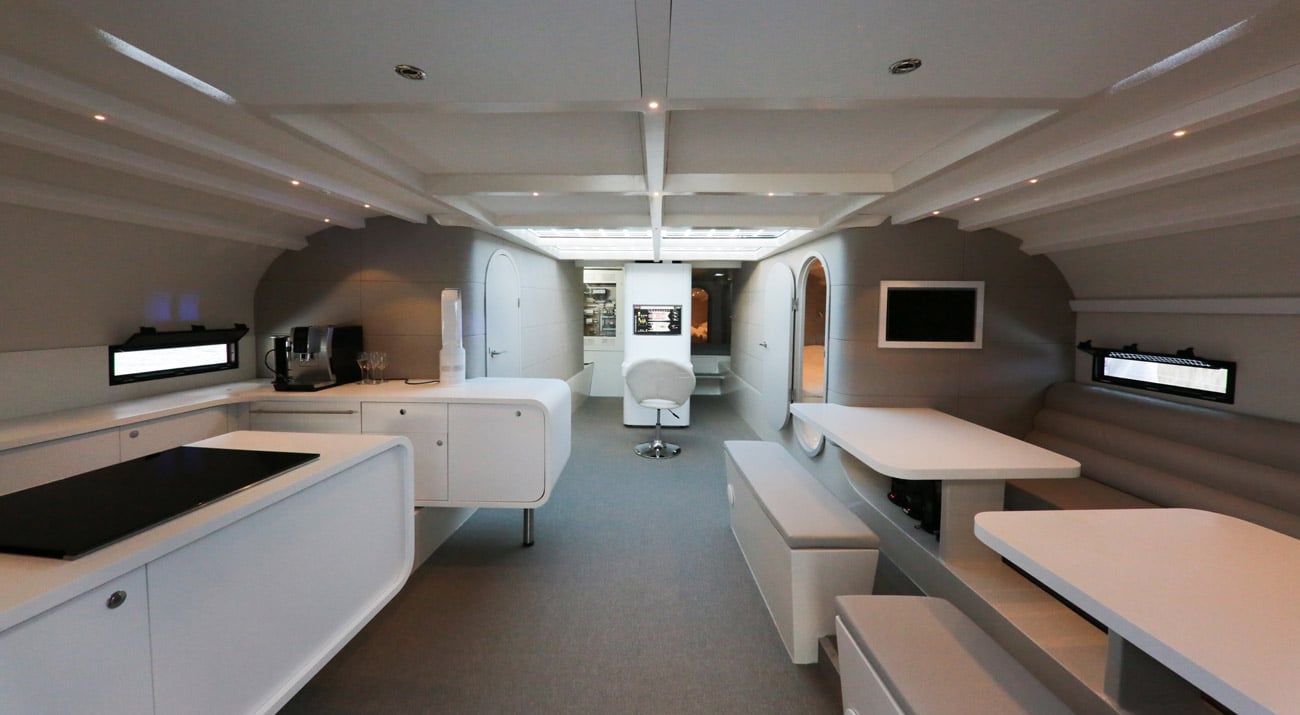 L'équipage d'Energy Observer est constitué d'une dizaine de personnes. Ici, l'intérieur du navire. (©Energy Observer-Jérémy Bidon)