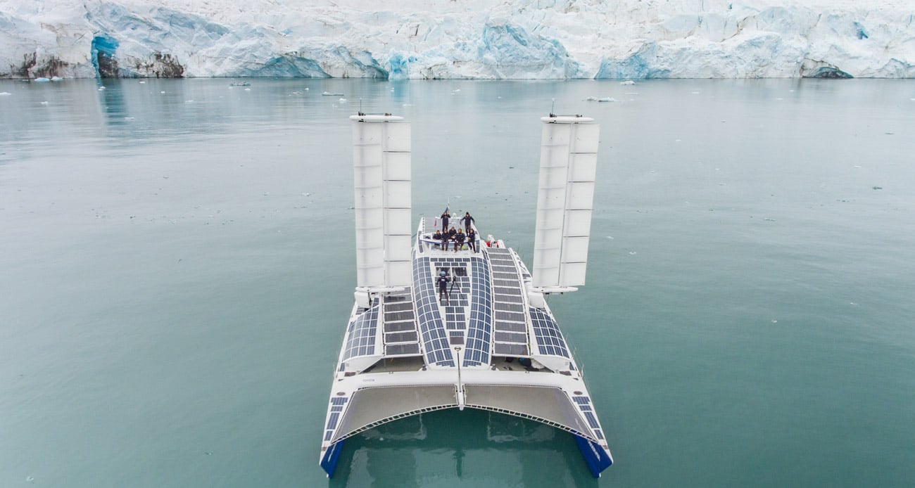 Les ailes d'Energy Observer, dites « OceanWings », ont une surface de 31,5 m2 chacune et tournent à 360°. (©Energy Observer-Amélie Conty)