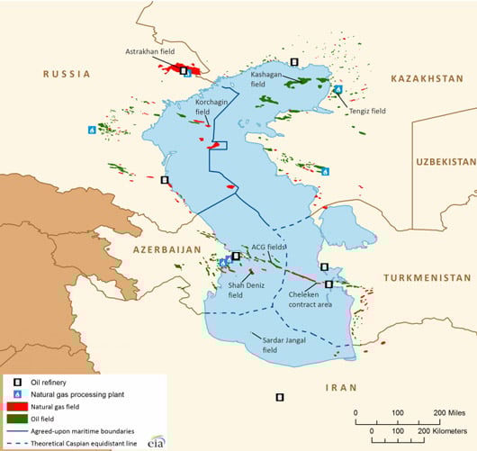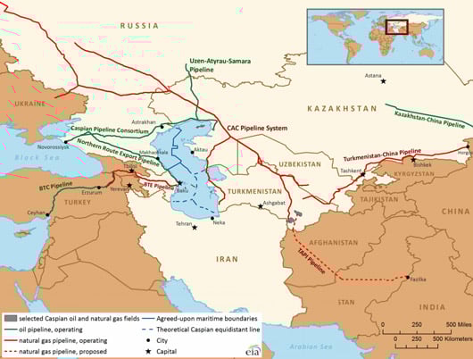 Le pétrole et le gaz dans la région de la mer Caspienne (©U.S. EIA)