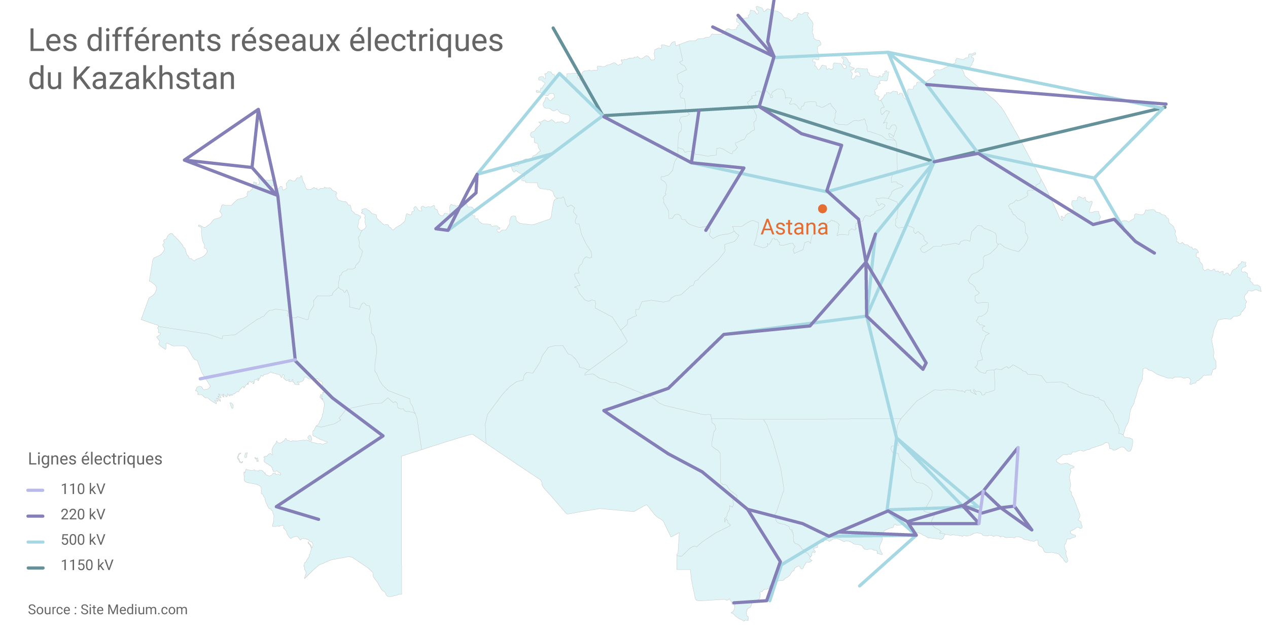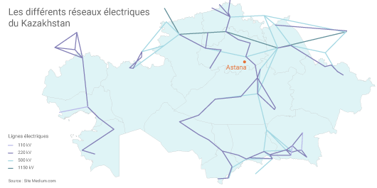 Les différents réseaux électriques du Kazakhstan (©medium.com)