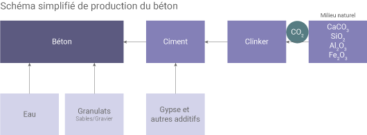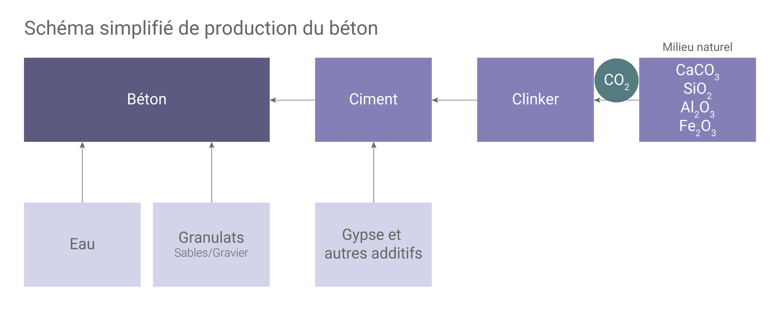 La production de ciment étant le principal facteur responsable de l’impact du béton sur le climat, il constitue la base des calculs suivants. Dans les hypothèses retenues, le ciment représente 15% en moyenne de la masse du béton(12).