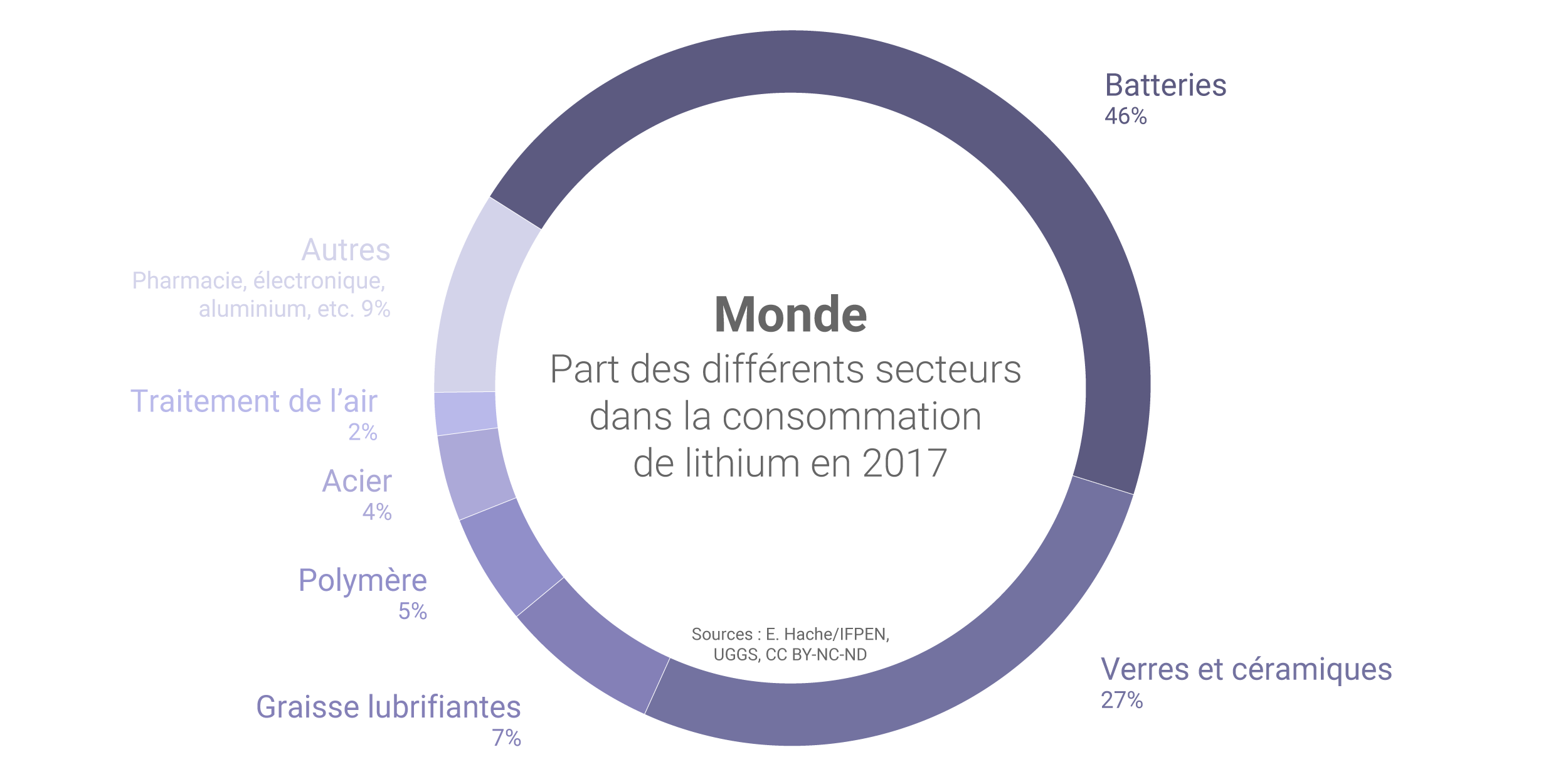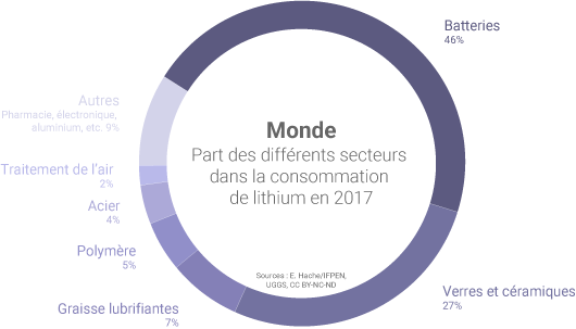 Le secteur des batteries représente aujourd’hui environ la moitié des volumes de lithium consommés dans le monde, dont un tiers est dédié aux seuls usages liés aux véhicules électriques selon l’Agence internationale de l’énergie (AIE). Chaque batterie a besoin d'environ 5 kilos de lithium.