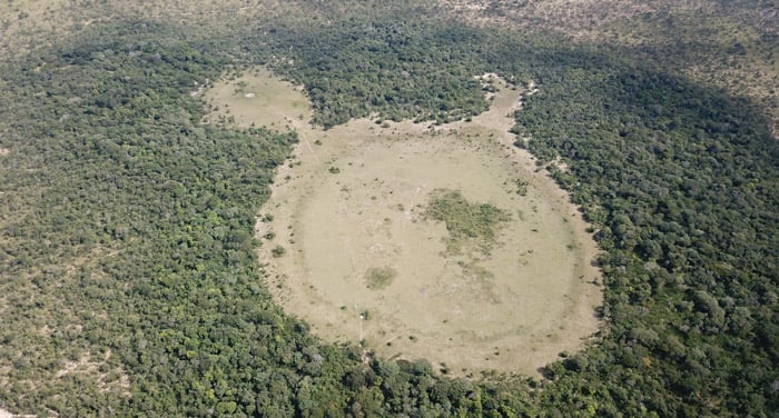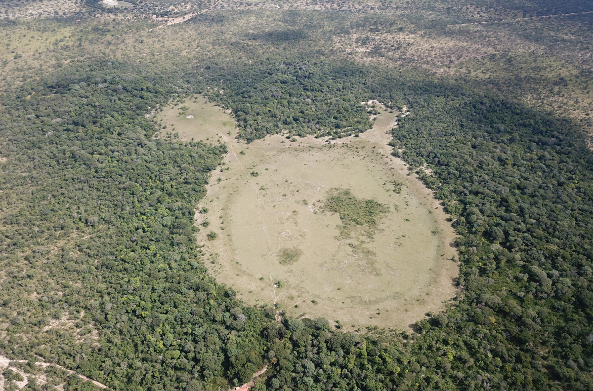 « Rond de sorcière » d'un rayon d'environ 400 m d'où s'échappe de l'hydrogène dans le Minas Gerais, au Brésil (©A. Prinzhofer)