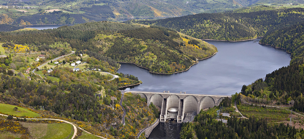 Vue aérienne du barrage hydroélectrique de Grandval, dans le Cantal. (©EDF-Pierre Soissons)