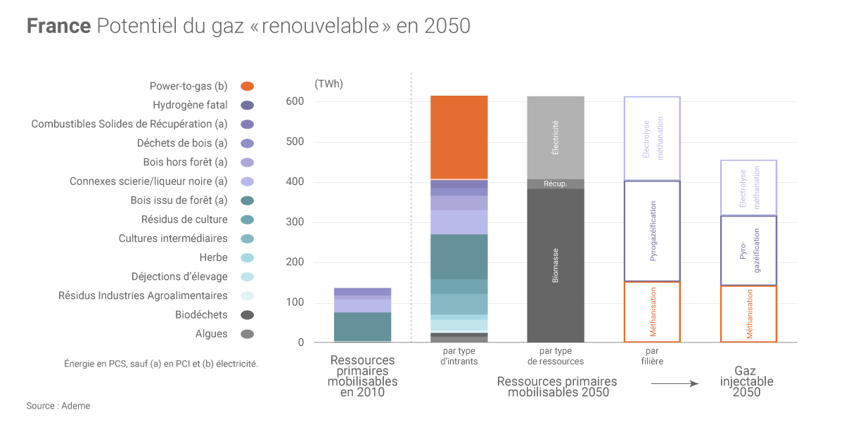 - Principalement le bois et l’électricité renouvelable via le Power-to-gas.