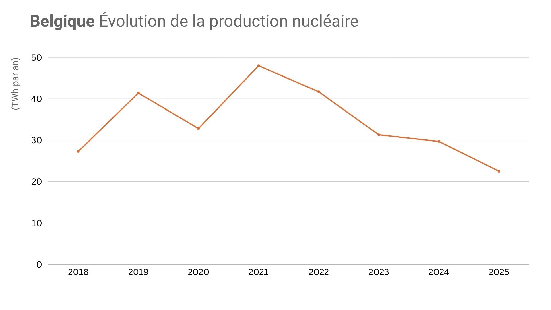 L'année 2025 a été marquée par l'arrêt de 3 des 5 derniers réacteurs du parc nucléaire belge : Doel 1 (15 février), Tihange 1 (1er octobre) et Doel 2 (1er décembre). Seules les tranches de Tihange 3 et Doel 4 restent ainsi en service, le gouvernement fédéral ayant décidé de prolonger de dix ans leur durée d'exploitation.