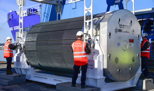 Le « Pacific Egret » va transporter 16 assemblages de combustible « MOX » jusqu'au Japon. (©Cédric Helsly/Areva)