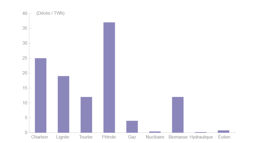 Ce tableau prend en compte les événements de Tchernobyl, Fukushima et la catastrophe qui eut lieu à l’est de Kychtym en Oural, dans les années 1953-1954. Ne soyons pas surpris. De source officielle chinoise, les décès par silicose, maladie des mineurs, sont annuellement de 24 000 et la pollution atmosphérique — pour l’essentiel due au charbon — tue prématurément plus de 700 000 personnes.