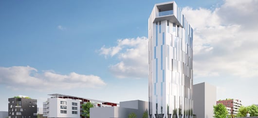 La Tour Elithis Danube qui culminera à 56,7 m de hauteur sera composée de 63 logements répartis sur 16 niveaux. (©Tour Elithis Danube Strasbourg- XTU architects)