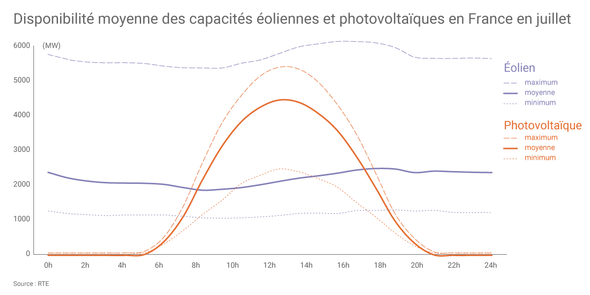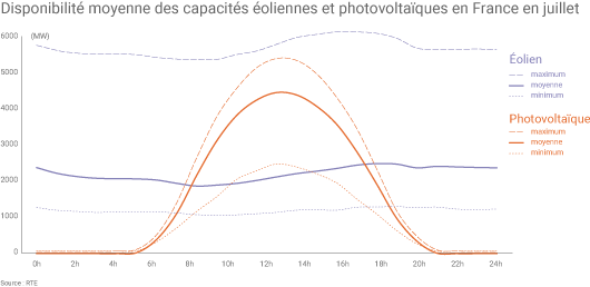 En cas de forte production intermittente (les capacités éoliennes et photovoltaïques en France ont augmenté de près de 10% par rapport à l’été 2016) et de faible demande, l’équilibre du réseau électrique pourra être assuré par les exportations mais également par une baisse de la production d’autres centrales « flexibles ».